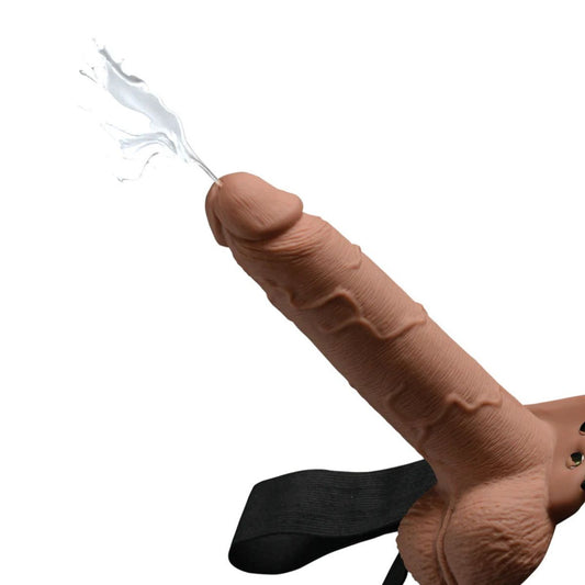 Dildo con correa Squirting Hollow Strap-On Brown 25 cm