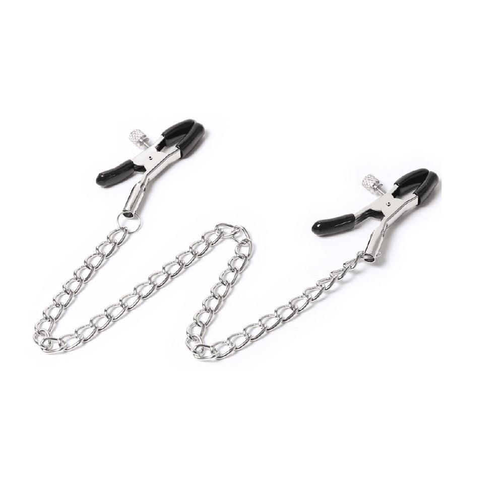 La cantidad de presión que se aplica al pezón es ajustable a través de los tornillos. Con cada movimiento de la cadena, las pinzas estimulan los pezones para sensaciones increíbles.